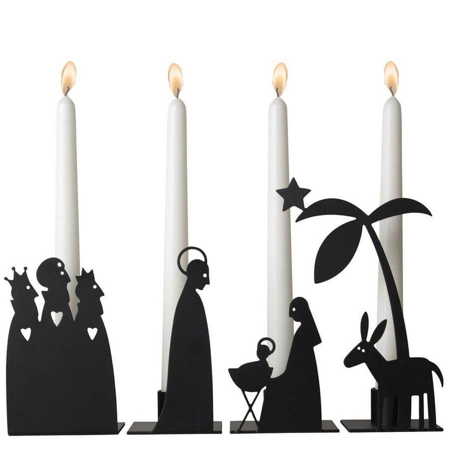 - Iedere kandelaar vormt een deel van de kerststal.
