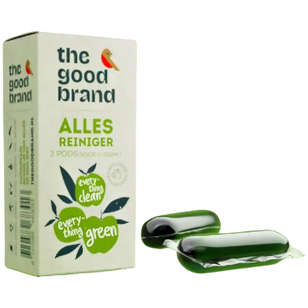 2 pods = 2× 500 ml allesreiniger. Los op in water, schudden en klaar. Duurzaam navullen, zonder plastic afval.