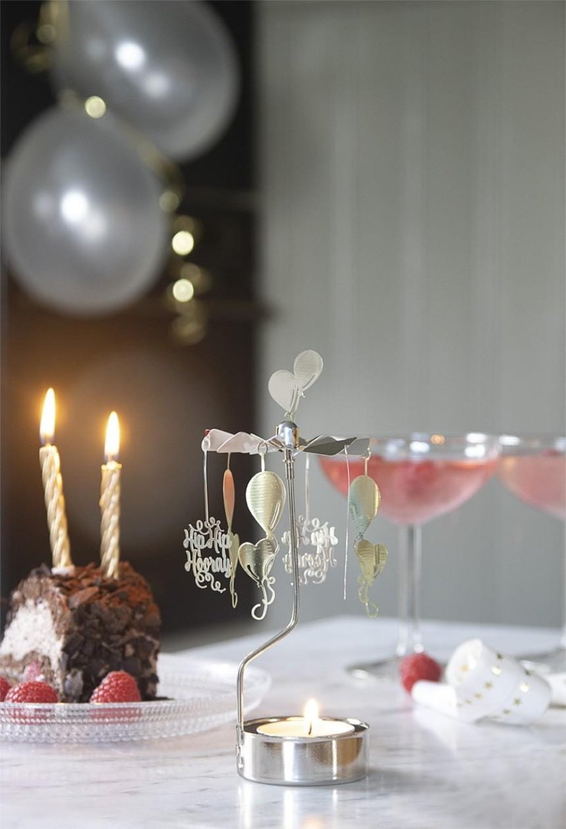 Iedere keer wanneer er iemand jarig is in de familie kan dit leuke ‘kerst’molentje tevoorschijn worden gehaald. Het idee van de roterende kandelaar komt natuurlijk van de ouderwetse Zweedse Angel Chimes, maar inmiddels heeft Pluto daar vele verschillende variaties op gemaakt. Om dit molentje te laten draaien heb je alleen een waxinelichtje nodig!
