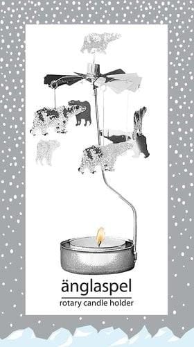 Met dit Ijsbeer kerstmolentje breng je winterse sferen in huis. Deze leuke roterende waxinelichthouder laat de Zilveren figuurtjes fonkelen in het kaarslicht. Door de warmte draaien ze ook nog rond en dat is ontspannend is om naar te kijken. Zoals al het kaarslicht brengt het bovendien gezelligheid in huis, zeker wanneer het buiten koud en donker is.