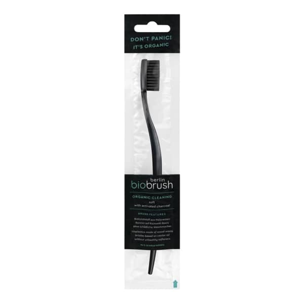 Biobrush Tandenborstel Charcoal is een tandenborstel van bioplastic. De zachte borstelharen bevatten actieve kool voor schone en witte tanden. De tandenborstel van Biobrush is (net als de verpakking) biologisch afbreekbaar.