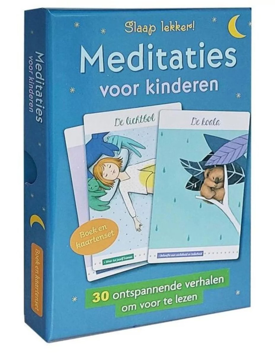 Meditaties voor kinderen, boek en kaartendeck. 19 x 13,5 x 2,3 cm.