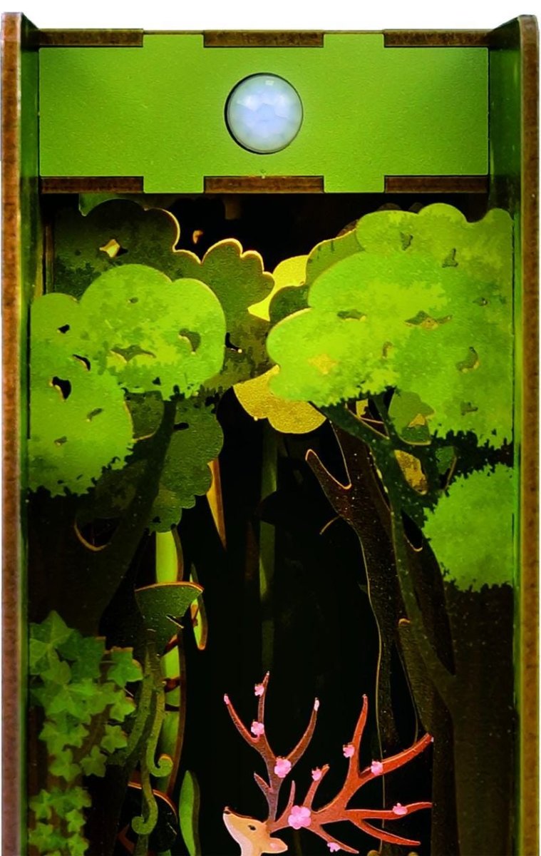Breng rust en natuur naar je boekenplank met deze DIY Boekensteun Hert in het Bos. Met 45 voorgesneden houten onderdelen bouw je een betoverend boslandschap, waarin een sierlijk hert tussen de bomen staat. De warme LED-verlichting – met slimme sensor – zorgt ervoor dat je boekenhoekje elke keer tot leven komt als je in de buurt komt.