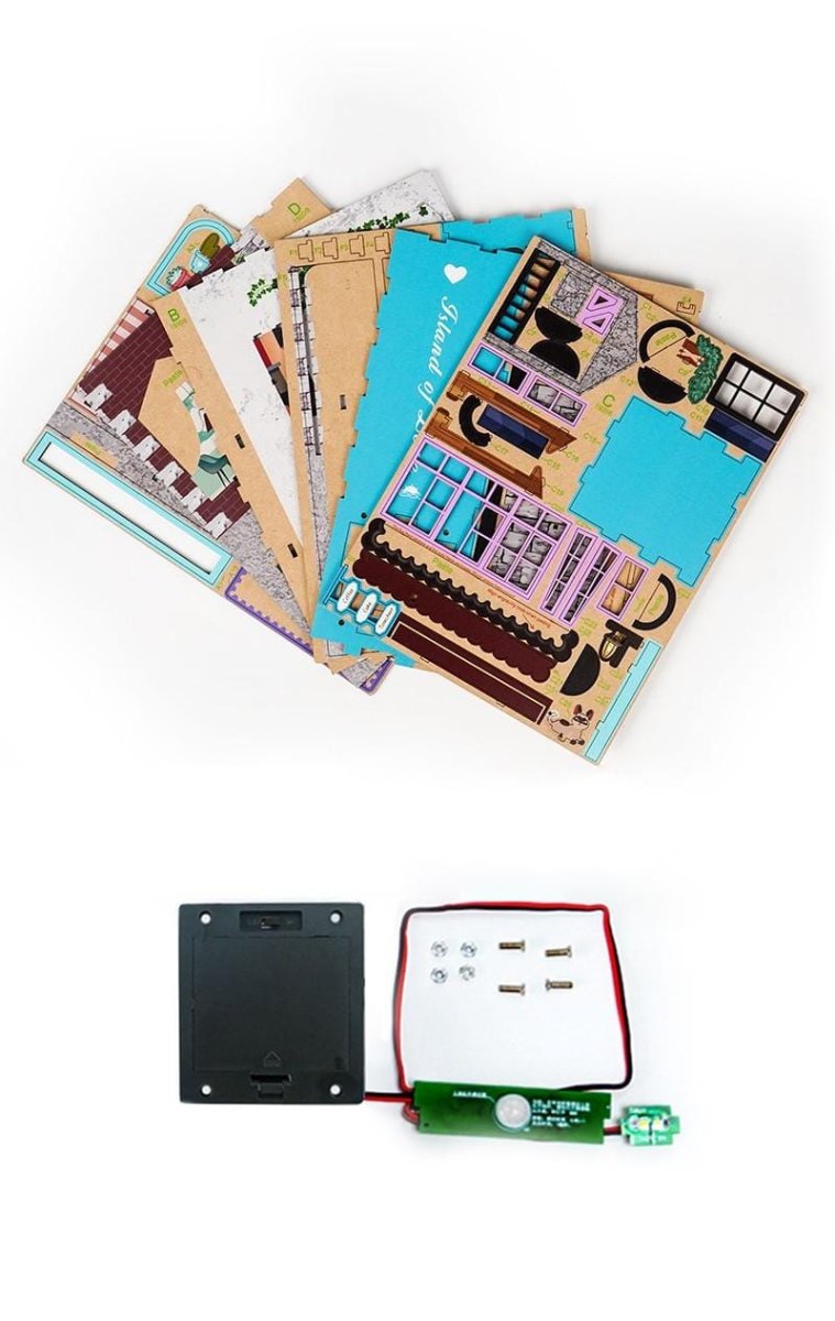 <Reis naar de sterren – gewoon vanaf je boekenplank – met de DIY Boekensteun In de Ruimte. Dit indrukwekkende bouwpakket bestaat uit maar liefst 247 houten onderdelen waarmee je een fascinerend ruimtescenario bouwt, compleet met raketten, planeten en sterren. De ingebouwde LED-verlichting springt automatisch aan zodra je dichterbij komt, dankzij de slimme sensor.