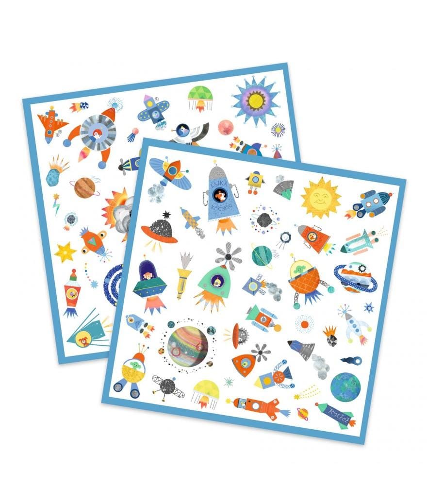 - Inhoud: 2 x 2 stickervellen met heel veel raketten, astronauten, planeten en sterren.