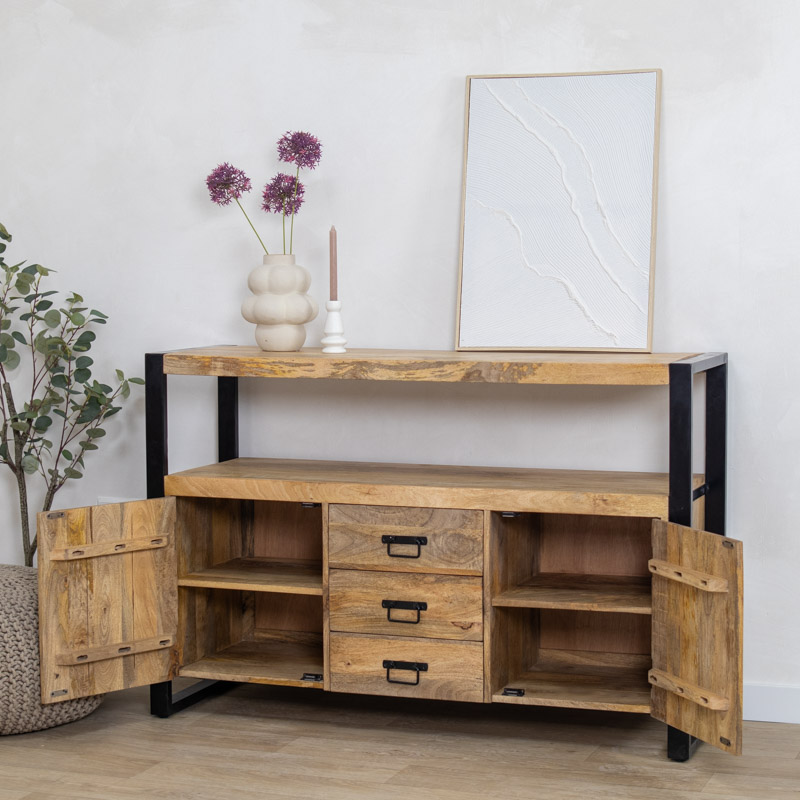 De Viggo-serie is een complete meubellijn vervaardigd uit mangohout met metalen accenten en ontworpen voor functioneel design. Van robuuste dressoirs tot compacte nachtkastjes en salontafels: elk item in de collectie ademt ambacht en moderniteit. De combinatie van naturel of zwart mangohout met strakke lijnen en stalen details maakt deze serie ideaal voor zowel woonwinkels als interieurprojecten in de hospitalitybranche. Geschikt voor direct gebruik dankzij grotendeels gemonteerde levering.