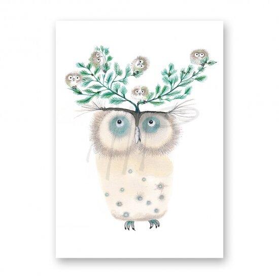 Een magische illustratie van een boom gevormd door kleurrijke veren, met een schattig vogeltje dat zijn plek heeft gevonden. Deze betoverende dubbele kaart straalt warmte en fantasie uit en is perfect om een speciale boodschap te sturen.