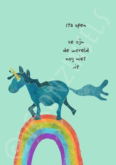De achtergronden worden gemaakt met wisselende technieken. Schilderen, linoleumsneden, foto’s of stencilinkt.  De afbeelding wordt gedigitaliseerd, bewerkt en de tekst wordt er ingezet. Een veronzinsel valt op z’n plek.