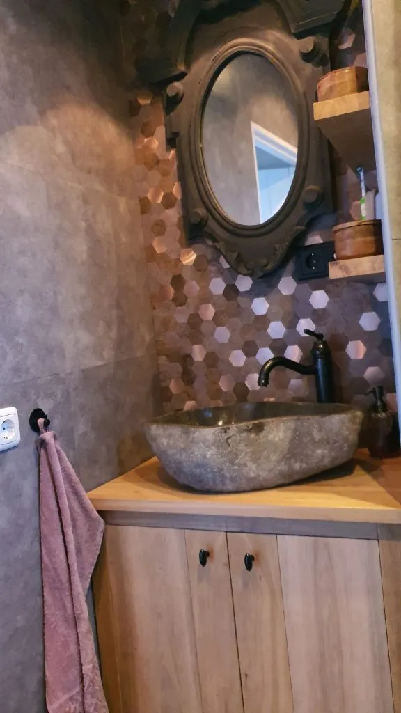 Waskom kraan naar keuze met flexibele waterleidingen.