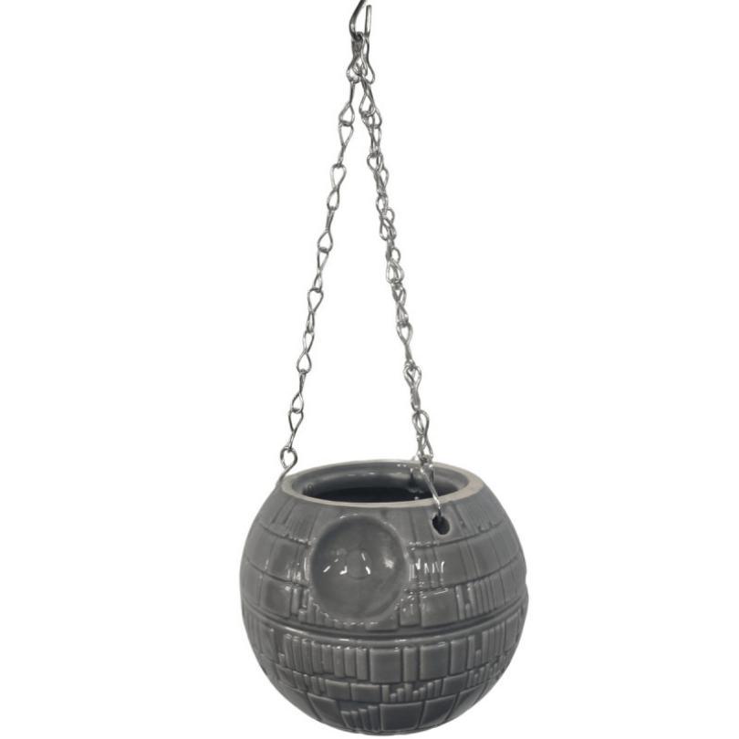 Deze Death Star hangbloempot is een must-have voor elke Star Wars fan. De keramieken pot is vormgegeven als de iconische Death Star en wordt geleverd met een stevige metalen ketting, zodat je hem eenvoudig kunt ophangen.