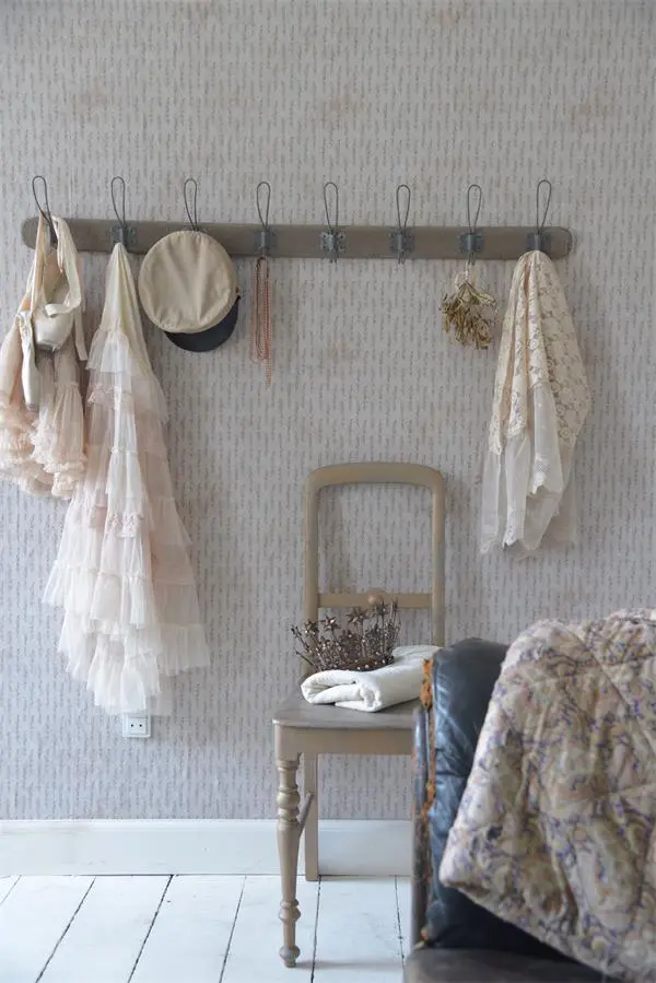 Leuke kapstok in verouderde houtkleur met 8 haken