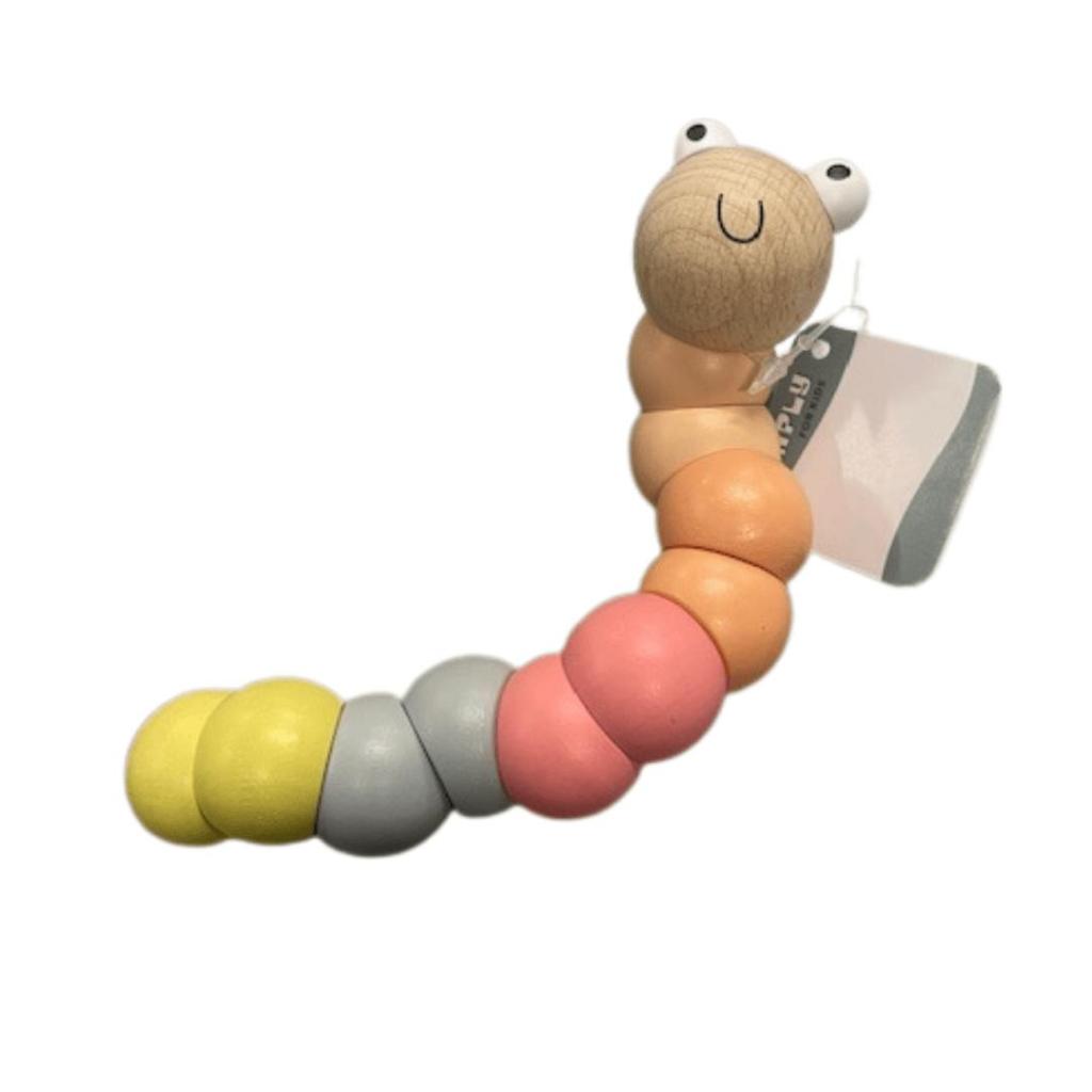 Stimuleer de zintuigen van je baby met de Houten Worm Roze-Rood-Oranje-Geel!