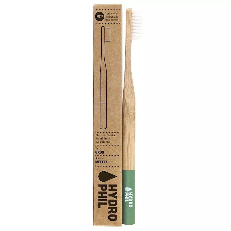 Plasticvrij poetsen met deze medium tandenborstel van bamboe en biobased nylon. Vegan, BPA-vrij en verpakt in gerecycled karton.