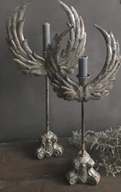 Prachtige standaard met engelen vleugels en een kaarsenhouder past zeer goed in een sobere en stoere woonomgeving