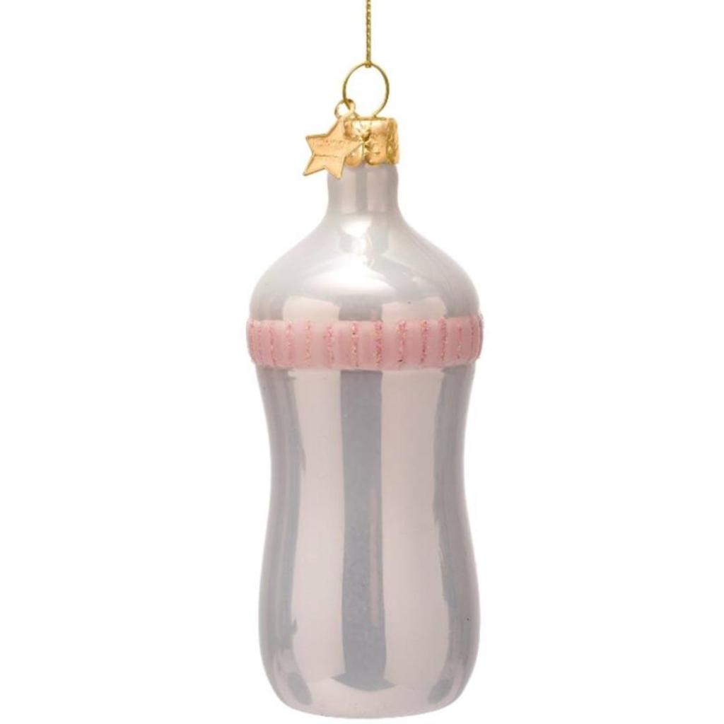 Een tikkeltje schattig, een tikkeltje nostalgisch – dit glazen babyflesje in roze is het perfecte ornament voor de allereerste kerst van een kleintje, of als speelse toevoeging aan jouw boom. Het flesje is subtiel glanzend, heeft een roze dop met glitterdetails en een fijne gouden hanger met sterretje. Gemaakt van glas en 10 cm hoog. Combineer ‘m met het blauwe babyflesje of geef het cadeau bij een geboorte vlak voor de feestdagen.