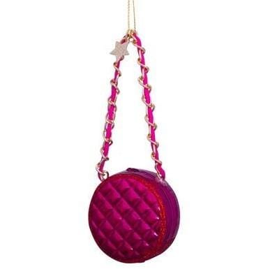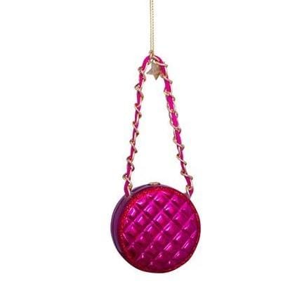 Deze kerstbal in de vorm van een ronde damestas is een echte eyecatcher voor de kerstboom. De glanzende roze kleur, het doorgestikte patroon en het goudkleurige kettinkje geven dit ornament een luxe uitstraling. Een vrolijk en stijlvol detail dat perfect past bij een moderne of kleurrijke kerstboom. Zoals alle ornamenten van Vondels is ook deze kerstbal met veel aandacht gemaakt.