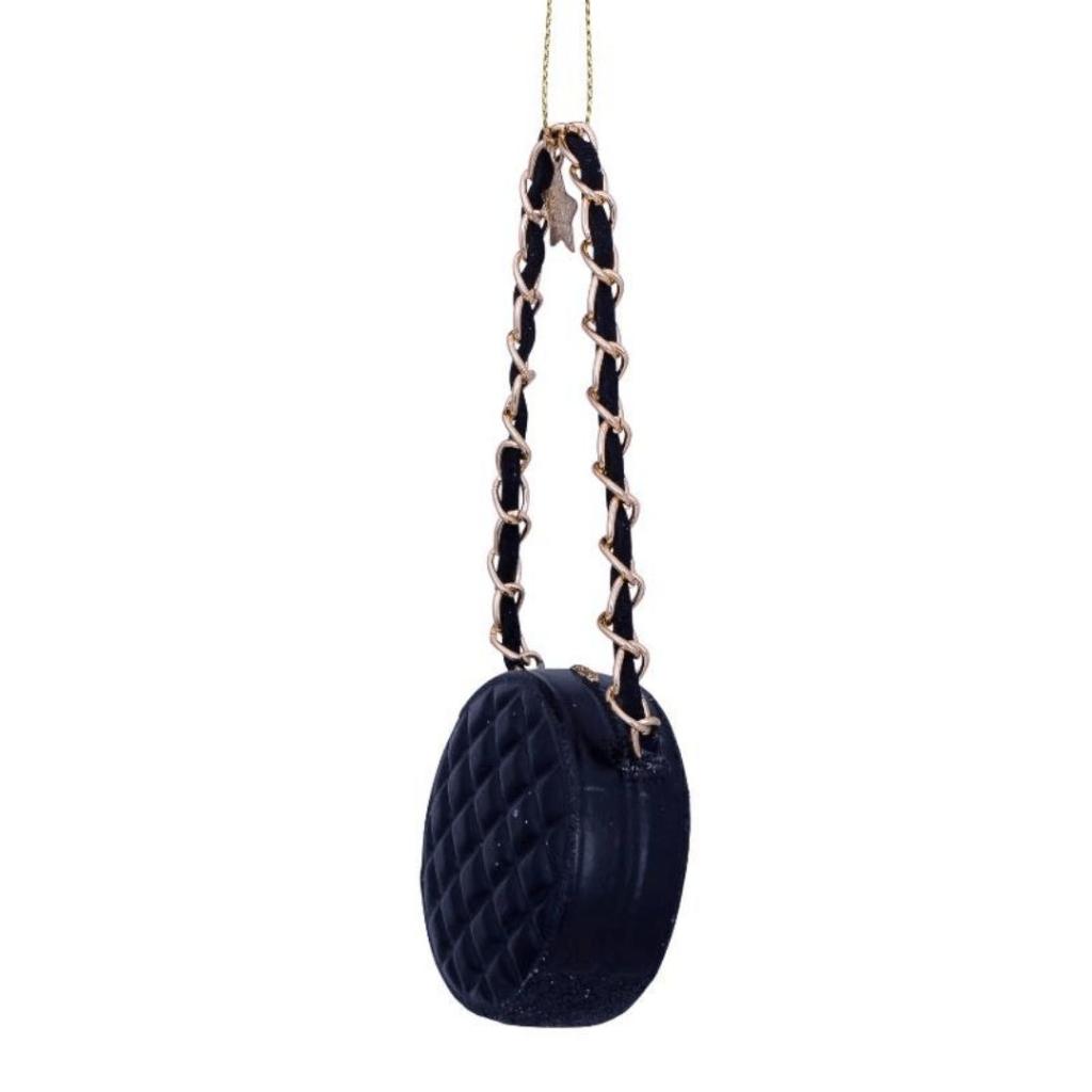 De Kerstbal Damestas Rond Zwart van Vondels is een classy ornament voor iedereen die houdt van mode én feestdagen met een knipoog. Deze elegante minitas is volledig van glas, mond geblazen en met de hand beschilderd. De quiltstructuur, het diepzwarte glazuur en de goudkleurige ketting geven dit ornament een luxe uitstraling die direct opvalt in de boom.
