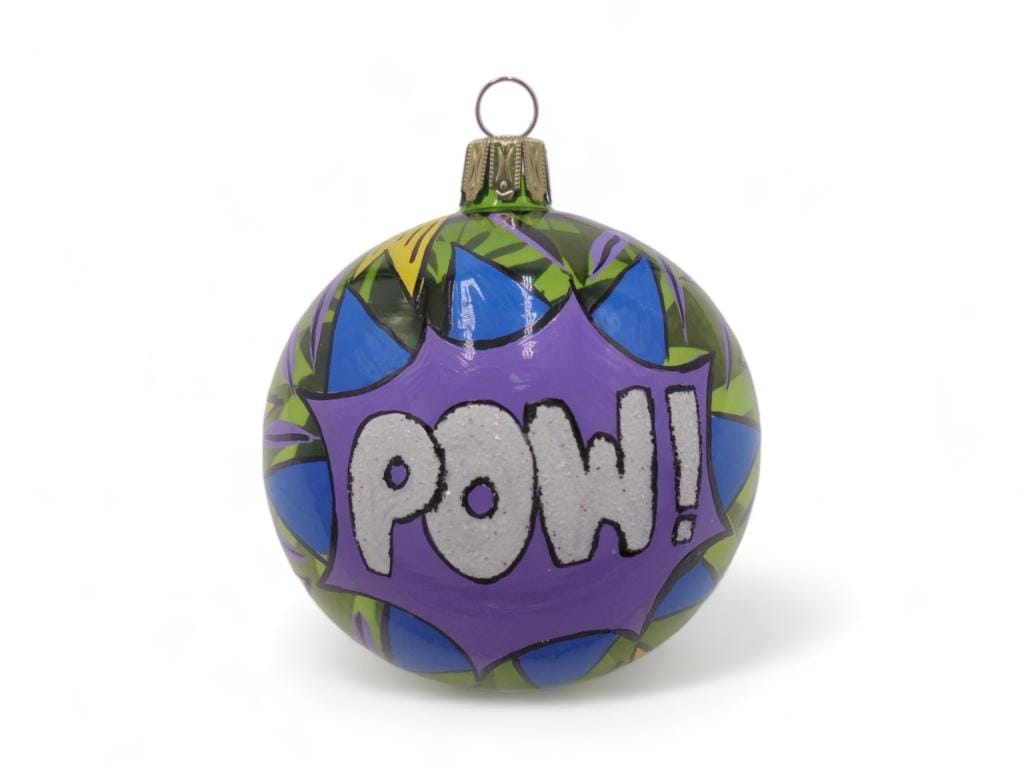 - Kerstbal Groen Glanzend transparant met Pop Art Pow