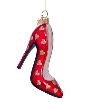 - Kerstbal Hoge Hak Rood met Gouden Hartjes