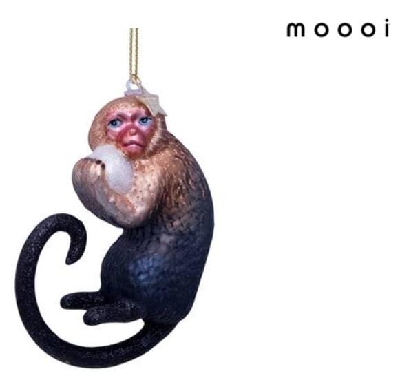 Het Nederlandse meubel-, interieur- en verlichtingsbedrijf Moooi is dit jaar een samenwerkingsverband aangegaan met het Nederlandse kerstballen bedrijf Vondels. Hieruit zijn 6 prachtige ornamenten van uitgestorven dieren voortgekomen. Een van de dieren is de indigo Makaak, die natuurlijk ook al bekend is van het prachtige behang van Moooi!