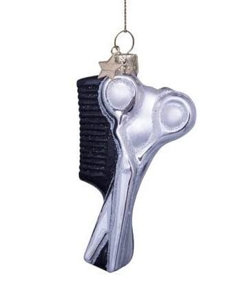 Deze Zilver Zwarte Kappersset kerstbal zal iedere kapper waarderen. Een prachtig ornament dat gemaakt is van glas en eigenlijk onmisbaar is in iedere kapsalon. Geweldig toch, een kerstboom vol met deze Kappersset van Vondels? Ook leuk om te combineren met de kerstbal Haarclip Lichroze.