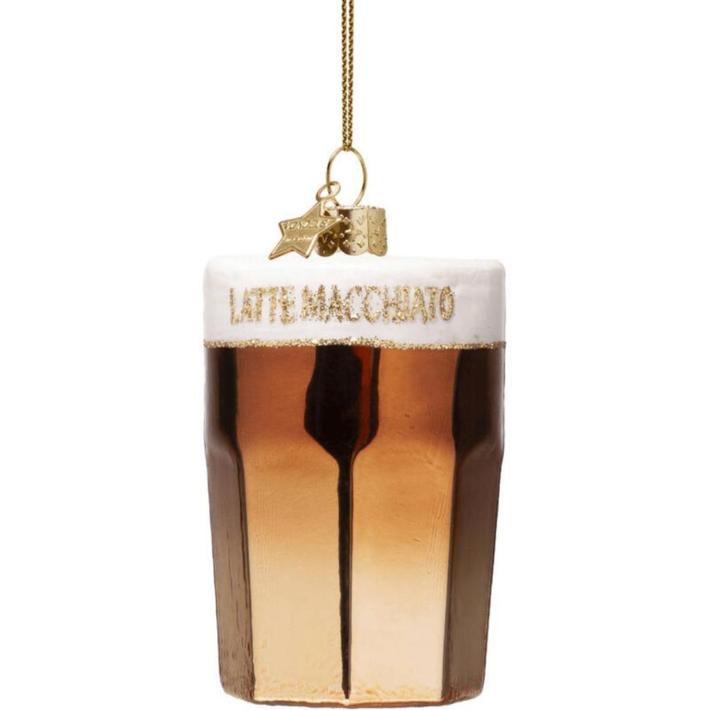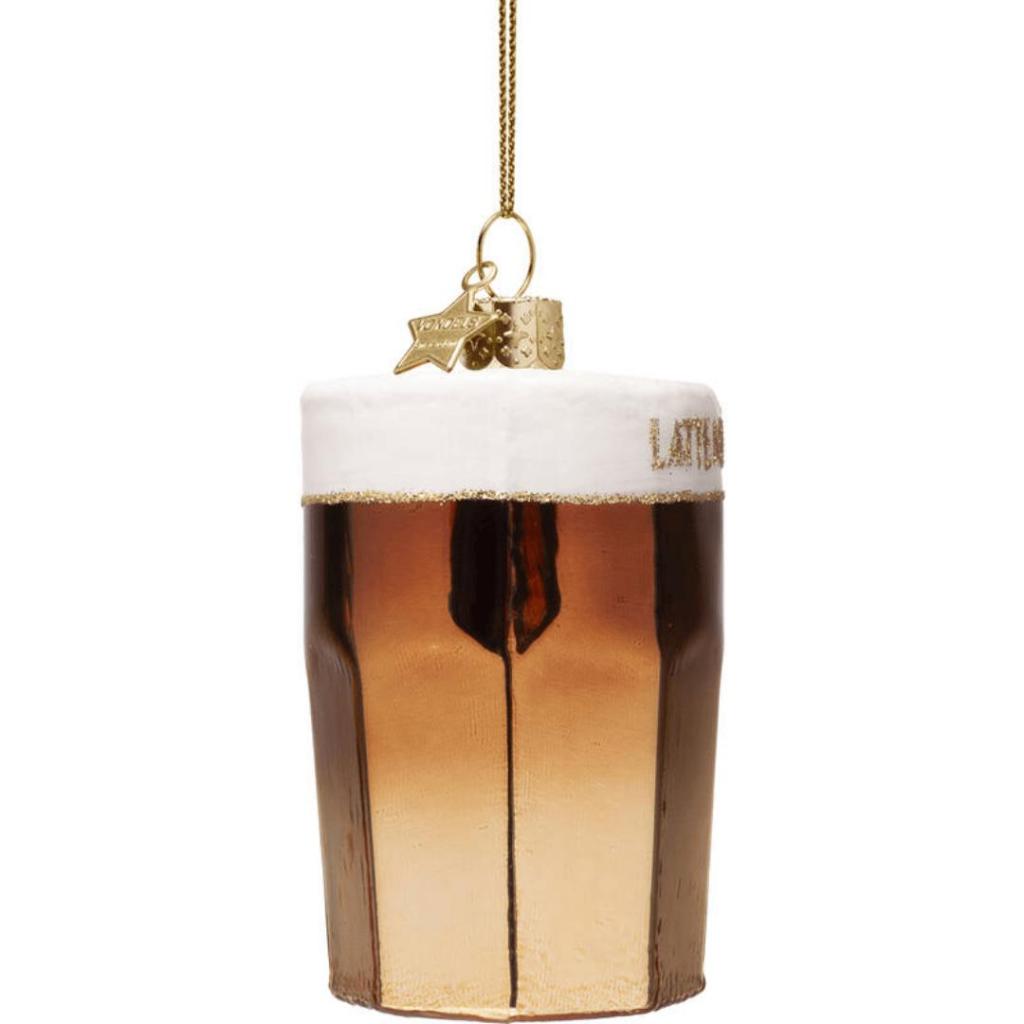 Koffieliefhebbers opgelet! Deze handgemaakte kerstbal van Vondels in de vorm van een latte macchiato is een heerlijke knipoog naar jouw favoriete cafémomenten. Het ornament is gemaakt van glas, gedetailleerd beschilderd en afgewerkt met een glanzende schuimlaag en gouden glitters. Een originele toevoeging aan jouw kerstboom vol karakter en humor.