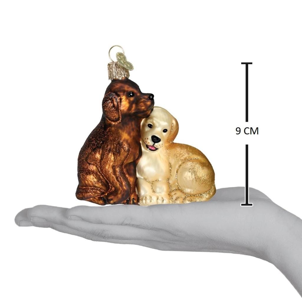 Een kerstbal die smelt van liefde. Deze handgemaakte kerstbal toont twee puppy’s die innig tegen elkaar aan kruipen, een betoverend beeld van onschuld en liefde. De levensechte details, van de zachte vacht tot de glinsterende oogjes, maken deze kerstbal tot een echte aanwinst voor elke kerstboom.