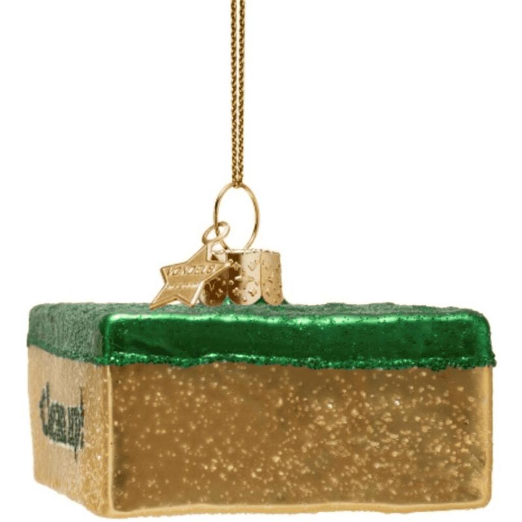 Voor iedereen met een vleugje zelfspot en een oog voor detail: deze kerstbal in de vorm van een schuurspons is een echte blikvanger in de boom. Het glazen ornament is rijkelijk voorzien van glitters en draagt aan de zijkant de tekst “Clean up!” – een knipoog naar het huishouden tijdens de feestdagen. Deze originele kerstbal is handgemaakt van glas, komt van het Amsterdamse merk Vondels en wordt geleverd in een papieren verpakking.