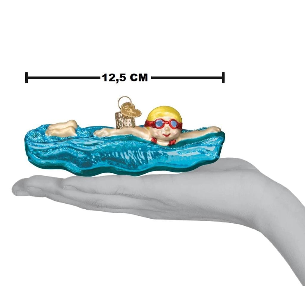 Maak een spetterende entree in de kersttijd met deze leuke kerstbal in de vorm van een zwemmer! Deze kleine zwemmer is niet alleen een leuke toevoeging aan je kerstboom, maar ook een reminder om lekker te blijven bewegen. Perfect voor zwemmers van alle leeftijden.