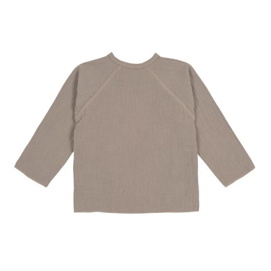 Dit mooie, eenvoudige overslaghemdje in mousseline heeft lange mouwen en striklintjes aan de binnen- en de buitenkant. Daardoor hoef je het niet over het hoofdje van je kind te trekken bij het uit- en aankleden, iets waar veel baby’s niet van houden. Het kimonomodel garandeert bovendien een mooie pasvorm.