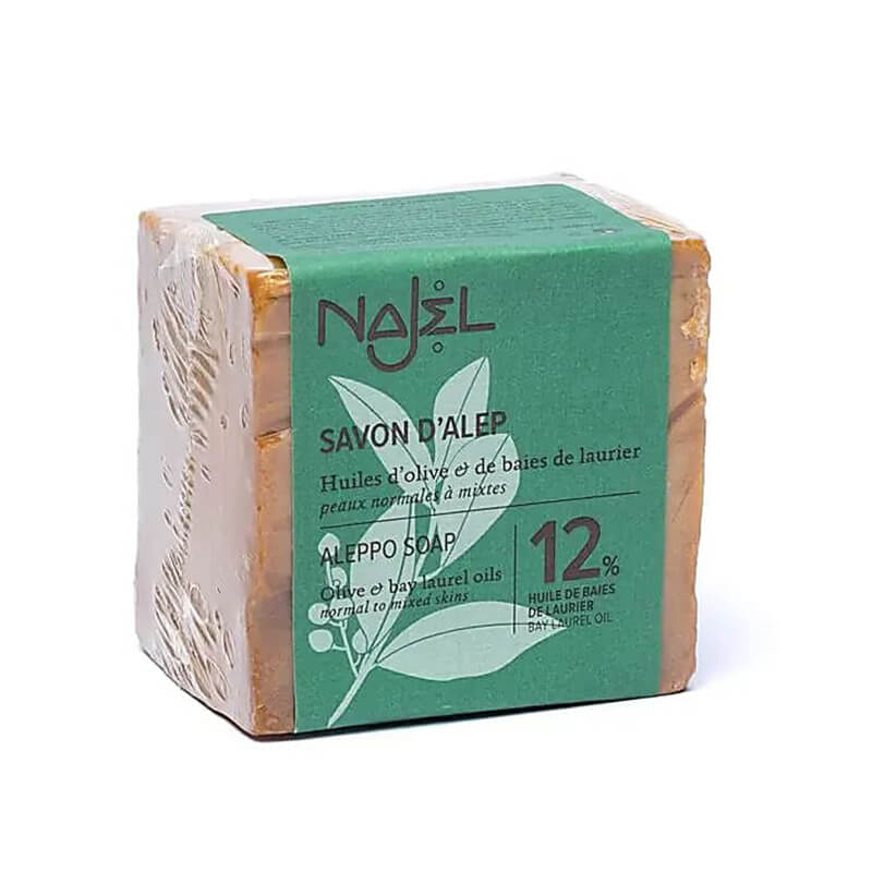 Authentieke Aleppo zeep met 12% laurierolie. Reinigt mild, zuivert de huid en reguleert talg. Handgemaakt in Syrië voor de normale tot vette en gevoelige huid.