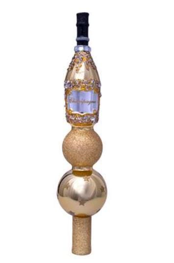 Sluit het jaar extra feestelijk af met deze Gouden Fles Champagne Piek op je kerstboom. Laat familie en vrienden samen komen bij de versierde boom en zing en proost op een gezellige kerst. Deze glazen Piek van Vondels staat mooi bij gouden kerstballen en bijzondere ornamenten. Een prachtig kerstcadeau om te geven.
