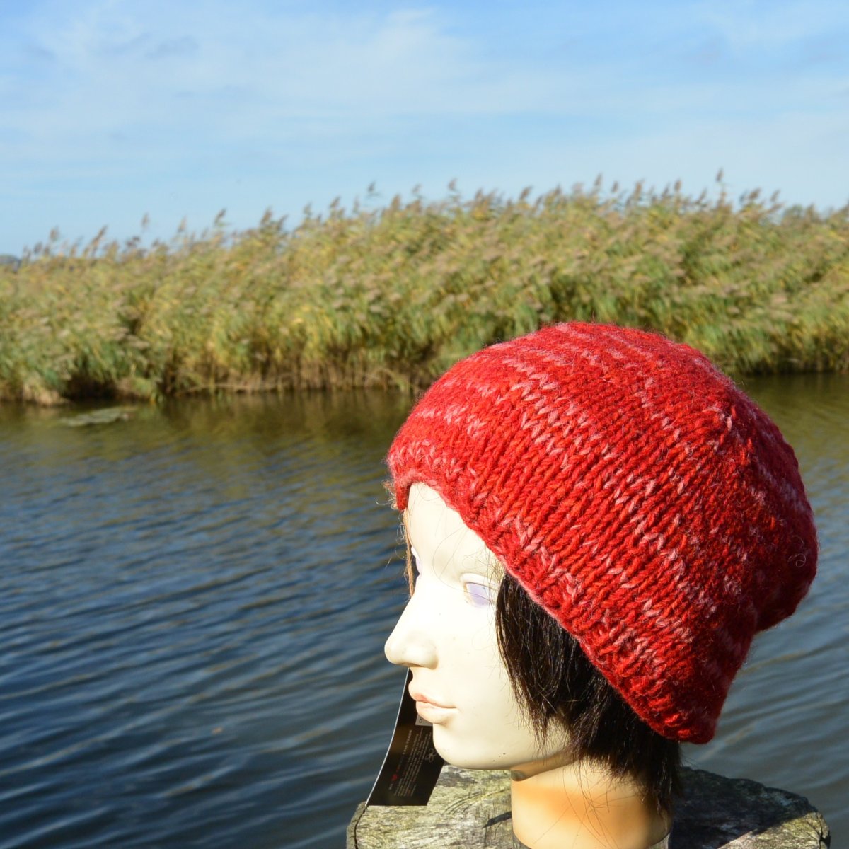 deze leuke ronde muts in twee kleuren beschikbaar, blauw en rood