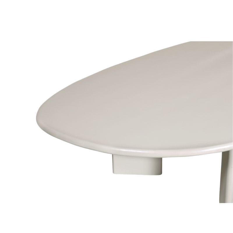 De Maia salontafel brengt moderne elegantie en speelse vormen samen in één bijzonder ontwerp. De driehoekige, organische vorm geeft de tafel een zachte en vloeiende uitstraling, terwijl de gebroken witte afwerking zorgt voor een frisse en eigentijdse look. Gemaakt van mangohout voelt Maia stevig en kwalitatief aan, maar oogt ze licht en verfijnd. Deze tafel is ideaal voor moderne en minimalistische woonkamers die behoefte hebben aan een subtiel statement. Maia is veelzijdig, stijlvol en perfect als middelpunt in iedere zithoek.