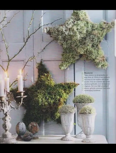 Tip: wikkel mos om de ster dan bekleden met o.a. tijm,euculyptus,steeneik enz.