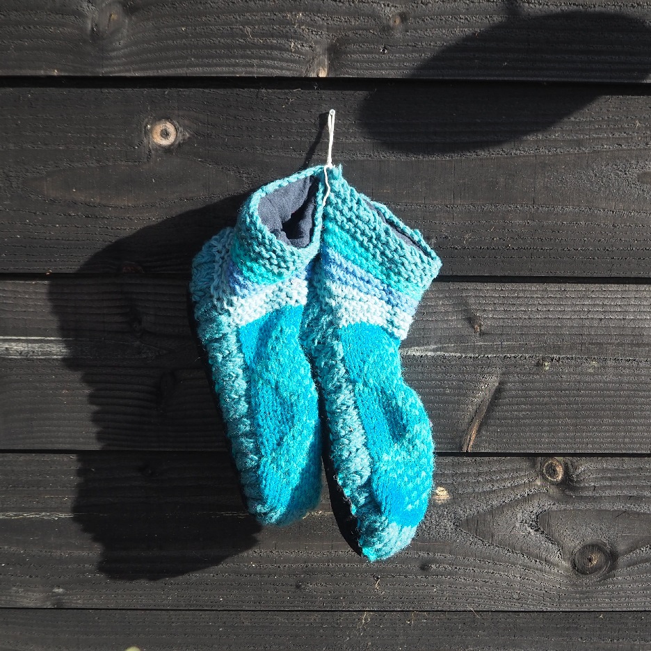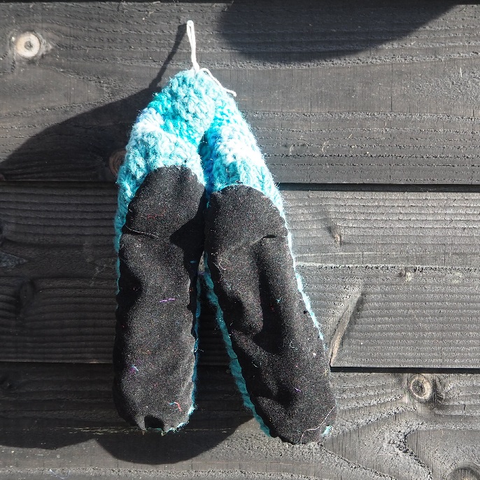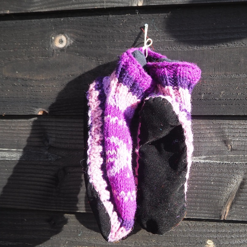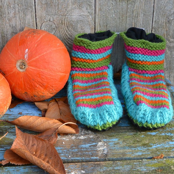 Lekker warme wollen sokken/pantoffels in vrolijke winter kleuren