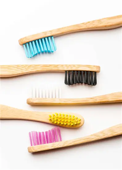 Set van 5 bamboe tandenborstels met zachte BPA-vrije borstelharen. Duurzaam, composteerbaar en vriendelijk voor tanden én planeet.