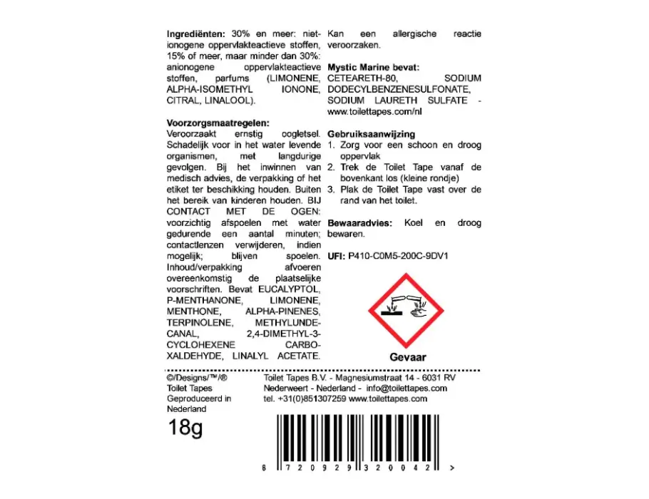 Mystic Marine wc‑blokje met frisse zeebries, tot 220 spoelbeurten, 90% minder plastic en FSC‑verpakking.