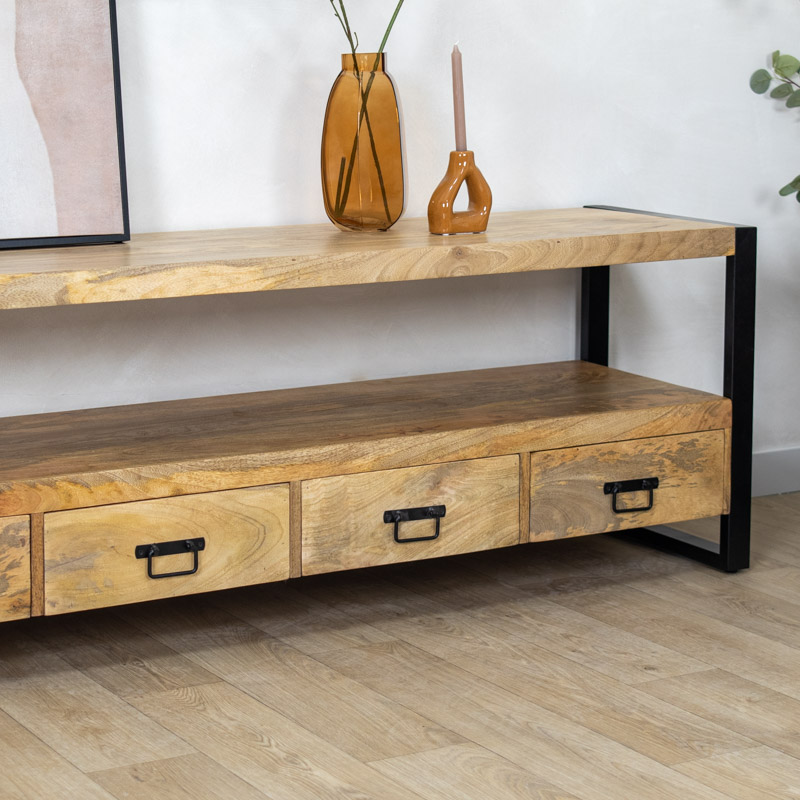 De Viggo-serie is een complete meubellijn vervaardigd uit mangohout met metalen accenten en ontworpen voor functioneel design. Van robuuste dressoirs tot compacte nachtkastjes en salontafels: elk item in de collectie ademt ambacht en moderniteit. De combinatie van naturel of zwart mangohout met strakke lijnen en stalen details maakt deze serie ideaal voor zowel woonwinkels als interieurprojecten in de hospitalitybranche. Geschikt voor direct gebruik dankzij grotendeels gemonteerde levering.