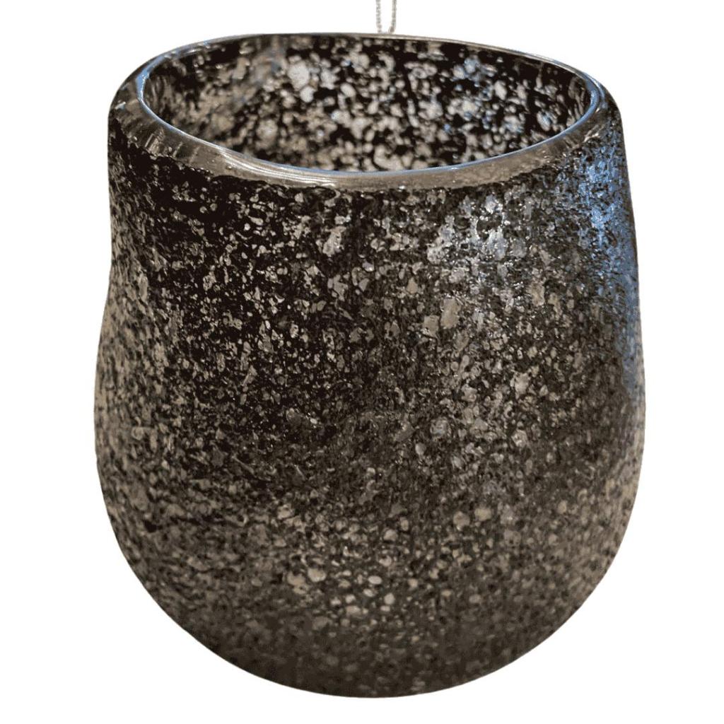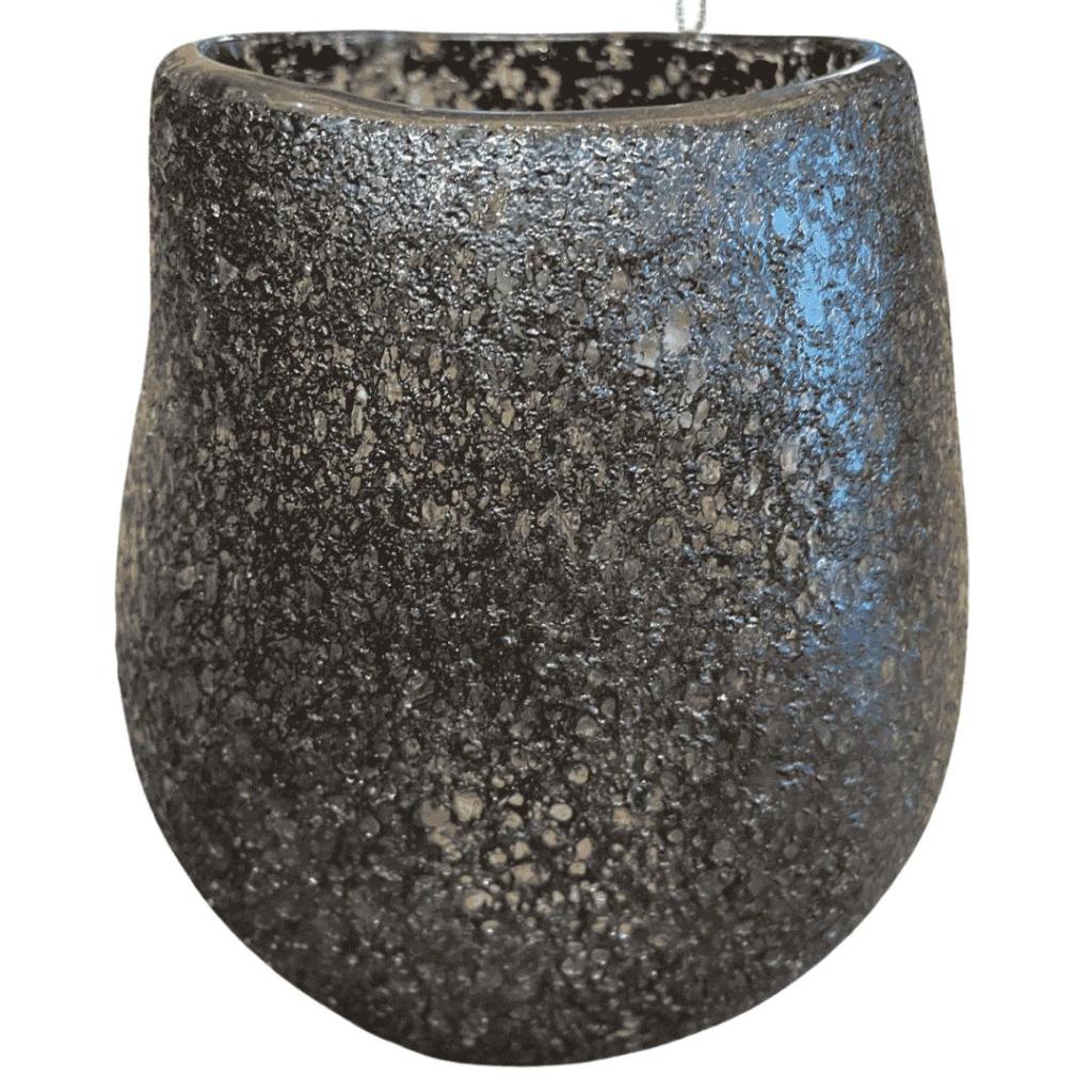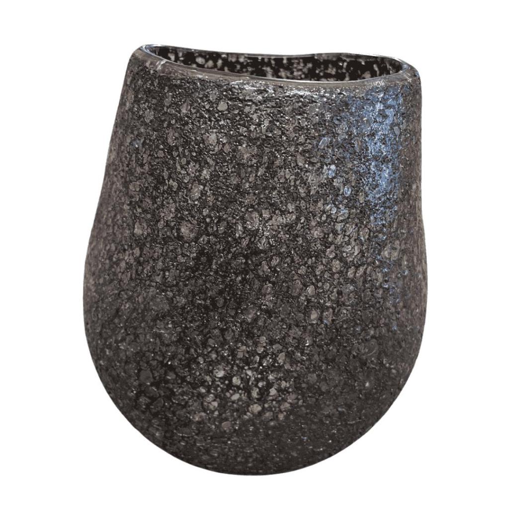 Deze bijzondere glazen vaas van Kersten heeft een robuuste, bijna steenachtige uitstraling. Het donkere rookglas is voorzien van een gespikkelde structuur waardoor elke vaas net iets anders oogt. Het resultaat is een decoratief object dat zowel met bloemen als zonder inhoud mooi tot zijn recht komt.