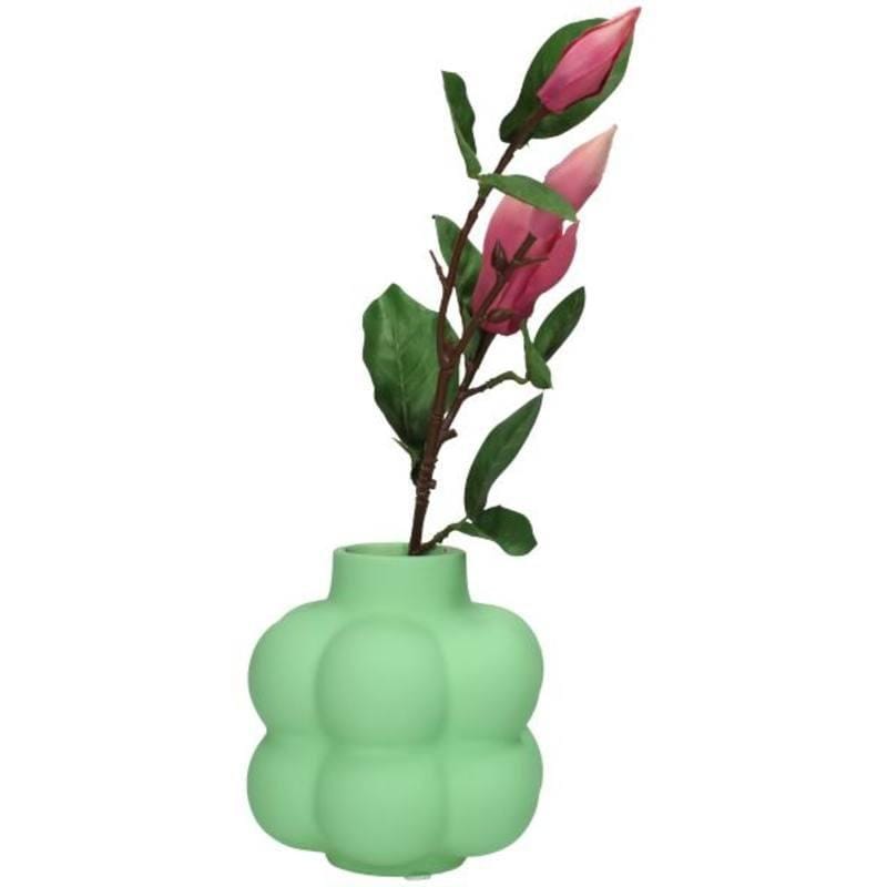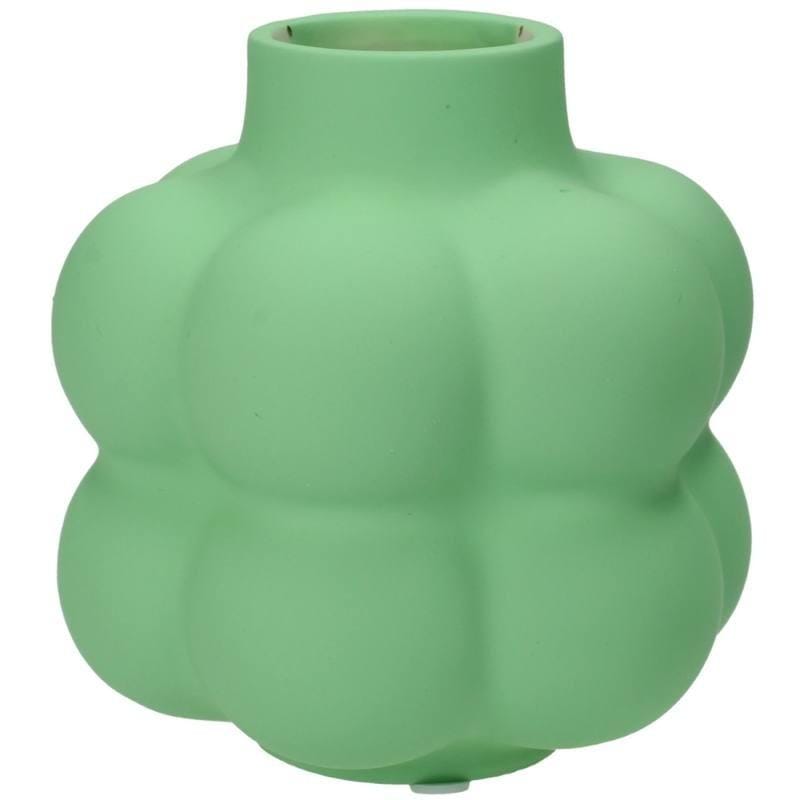Deze mintgroene vaas van Kersten B.V. heeft een zachte, ronde vorm en een frisse kleur die direct opvalt zonder schreeuwerig te zijn. De vaas is gemaakt van fijn aardewerk en heeft een matte uitstraling, wat ’m een moderne en rustige look geeft.