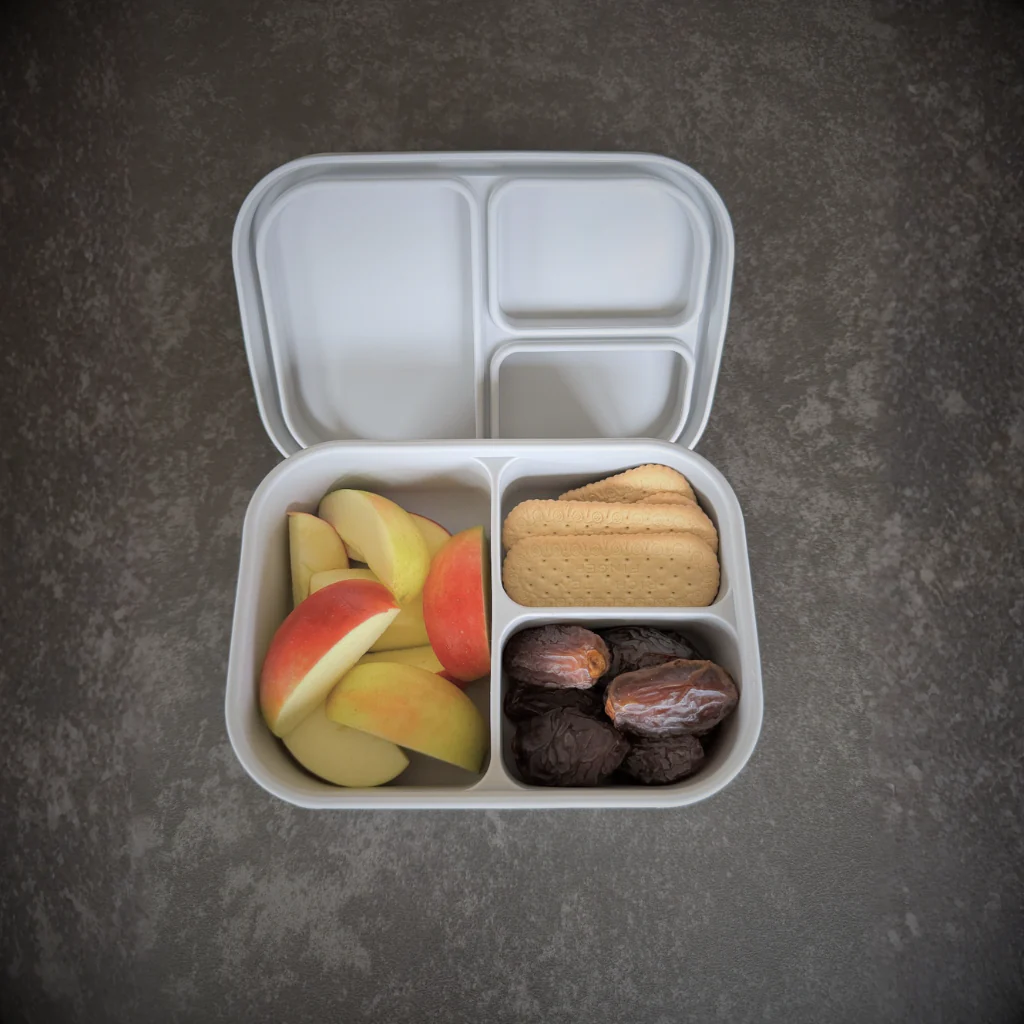 De siliconen lunchtrommel houdt je eten overzichtelijk op zijn plek en sluit stevig af. De bijpassende drinkbeker ligt prettig in de hand en is geschikt voor water, sap of warme dranken. Beide onderdelen zijn licht van gewicht en compact, waardoor ze makkelijk mee te nemen zijn in elke tas.