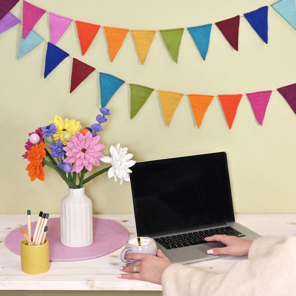 - Slinger van felgekleurde vilten vlaggetjes.