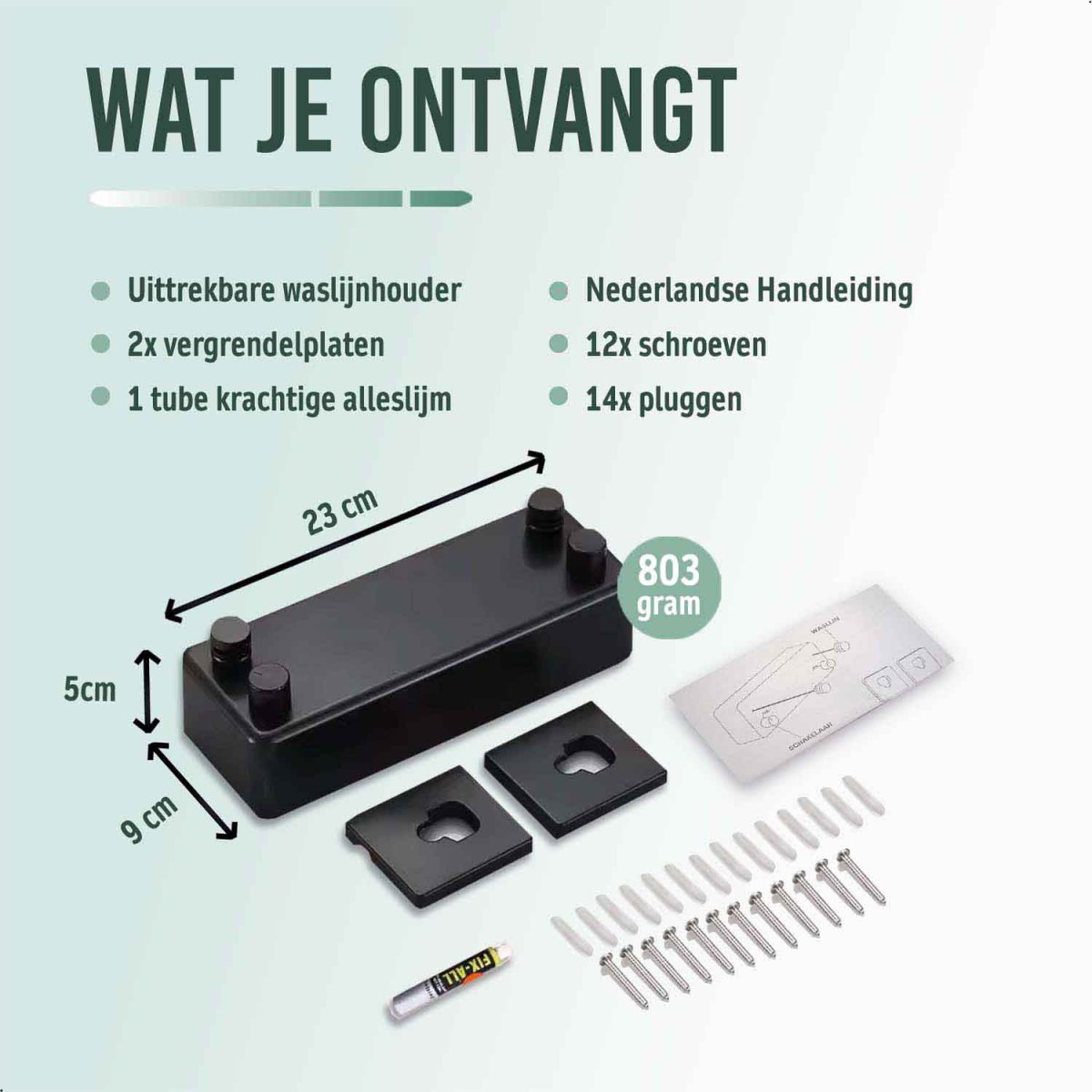 • 2x waslijn van 4,2 meter lengte elk (8,4 meter totaal)