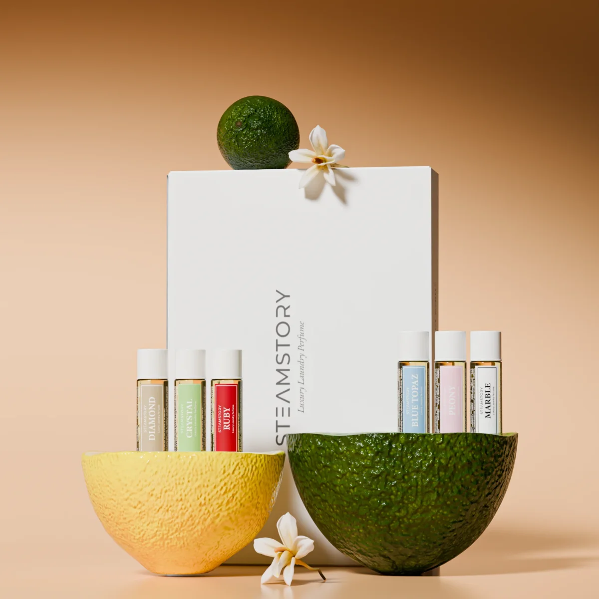 Laat je onderdompelen in een luxueuze selectie van 8 unieke geuren, elk geïnspireerd door de mooiste elementen uit de natuur. Van de zachte, bloemige tonen van bloeiende bloemen tot de levendige frisheid van citrusvruchten en de kalmerende essentie van aromatische kruiden – elke geur is met zorg ontworpen om jouw waservaring naar een hoger niveau te tillen. Of je nu houdt van subtiele, verfrissende of krachtige aroma’s, deze collectie biedt voor ieder wat wils en omhult je kleding met langdurige elegantie en frisheid.