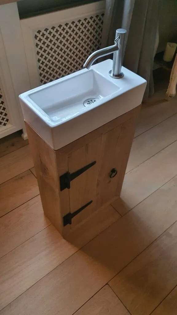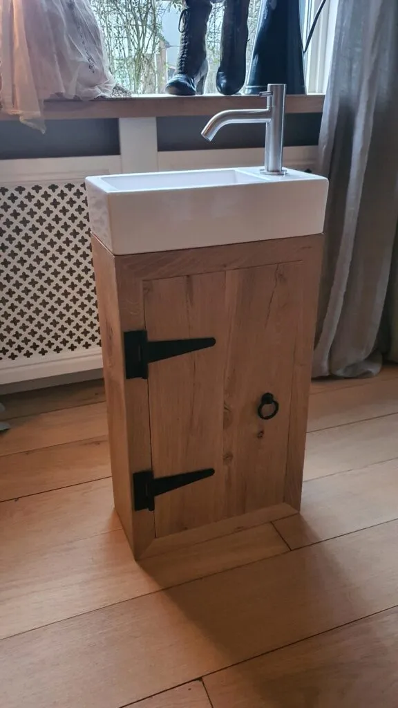 - Prachtig massief eiken wc meubel met opberg mogelijkheden voor o.a.closetrollen e.d.