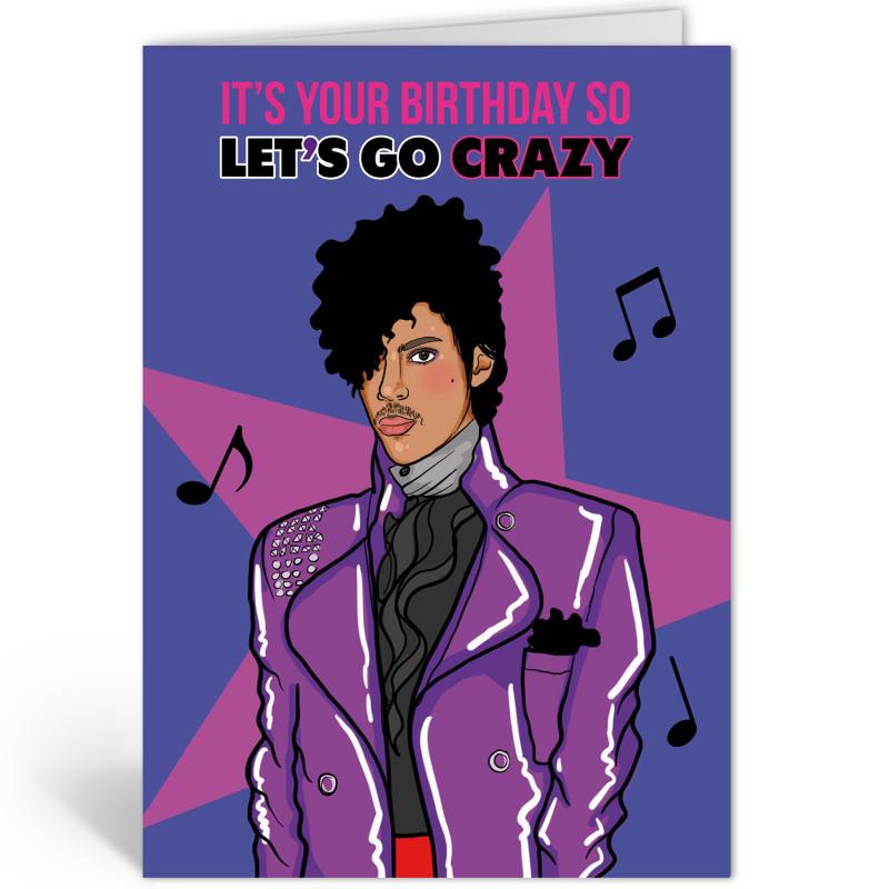 - Afbeelding: Prince met tekst “It’s your birthday so let’s go crazy”