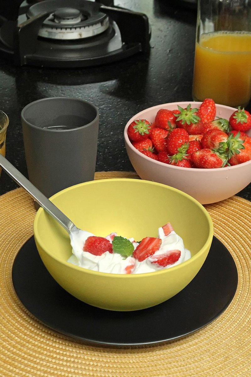 Dit servies wordt gemaakt met plantaardige wax, raapzaadolie, krijt, kiezel en glucose. Het gebruik van lokale en natuurlijke grondstoffen zorgt voor een minimale ecologische voetafdruk. Aardolie-plastic is verleden tijd! Zuperzozial laat zien dat design en duurzaamheid hand in hand gaan.Breng kleur én duurzaamheid naar jouw eettafel met de Zuperzozial Nature Schaal-16 in Geel. Deze compacte schaal met een diameter van 16 cm is perfect voor ontbijt, kleine salades, snacks of een portie fruit. Gemaakt van natuurlijke materialen zoals bamboe en maïs, is deze schaal niet alleen milieuvriendelijk, maar ook lichtgewicht, stevig en geschikt voor dagelijks gebruik. De frisse gele kleur zorgt direct voor een zonnige sfeer op tafel. Combineer deze schaal met andere formaten en kleuren uit de Zuperzozial collectie en creëer jouw eigen unieke, kleurrijke tafelsetting. Mix & match ook met bijpassende bekers en saladebestek voor een vrolijk geheel!